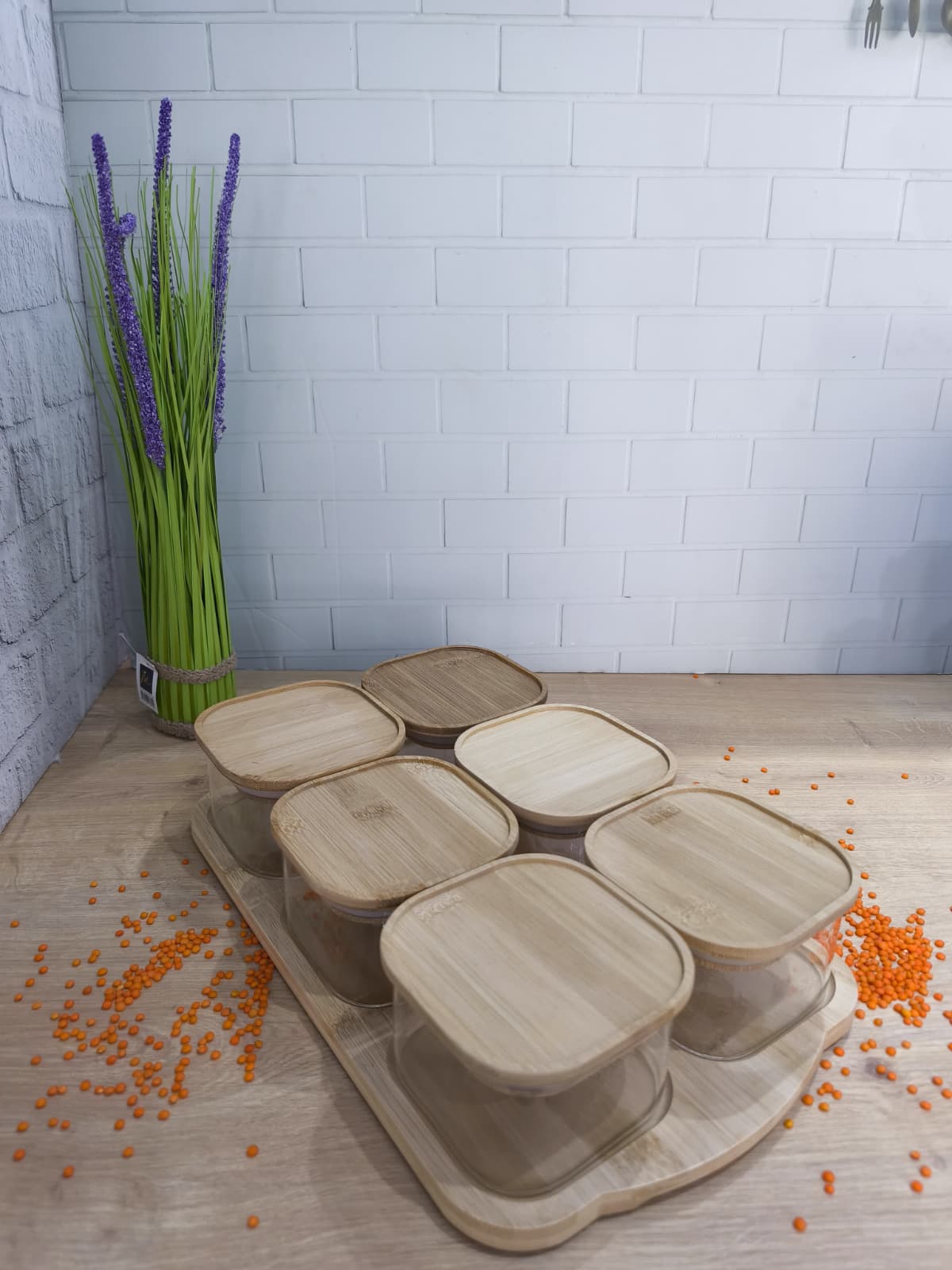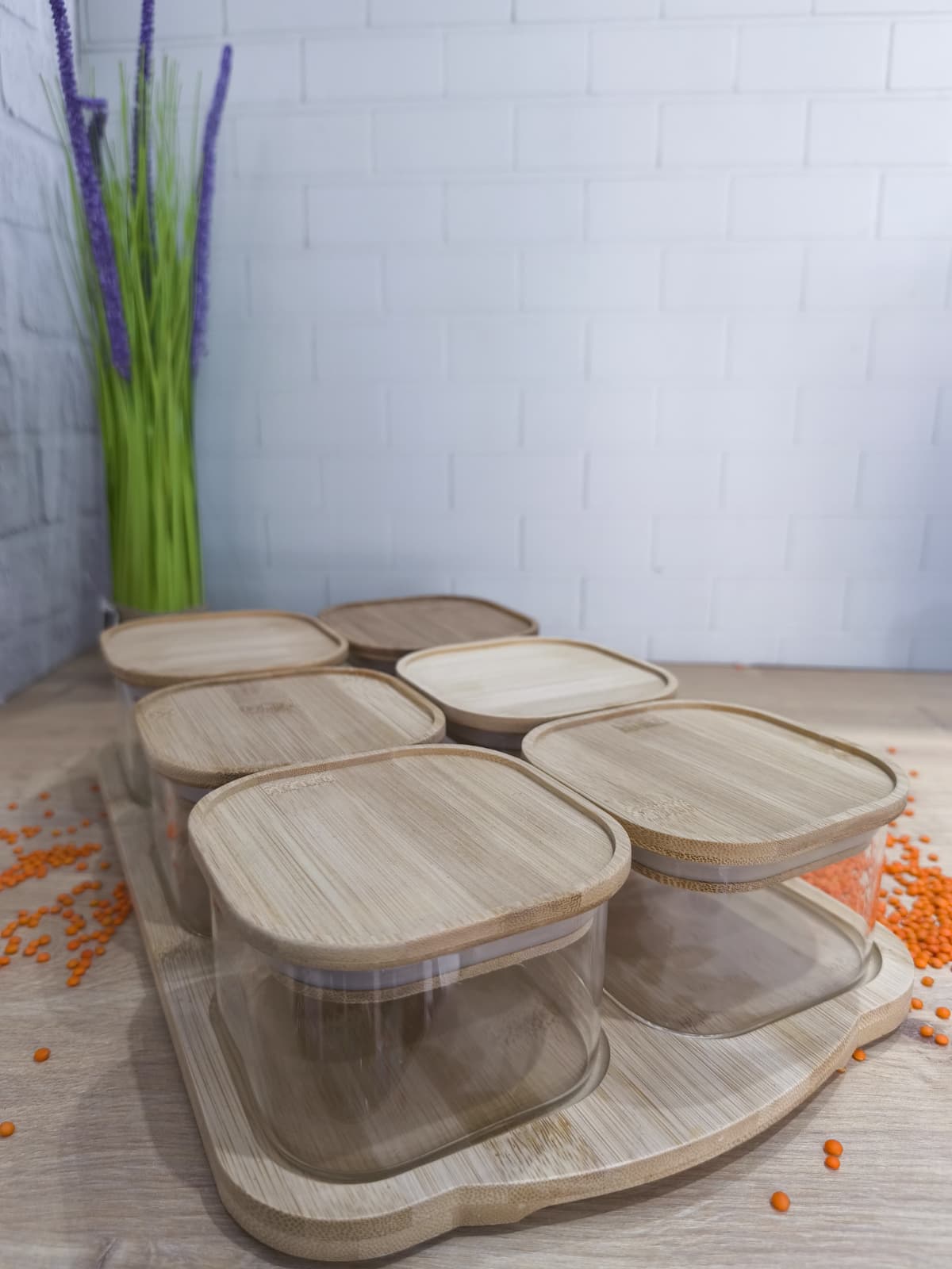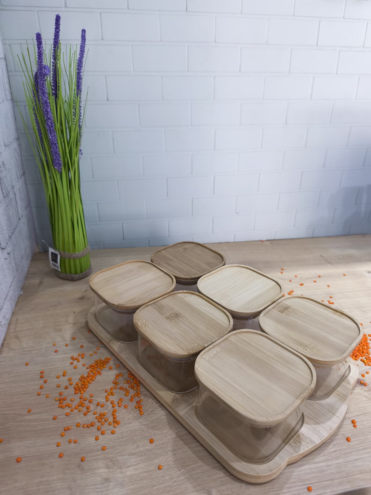 13 PARÇA BAMBU TEPSİLİ VAKUMLU KAPAK CAM KAHVALTILIK