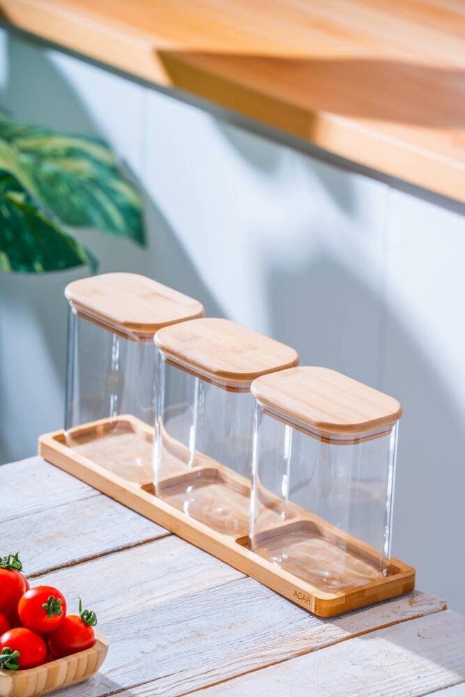 BAMBU VAKUMLU KAPAK 3LÜ KAVANOZ SET