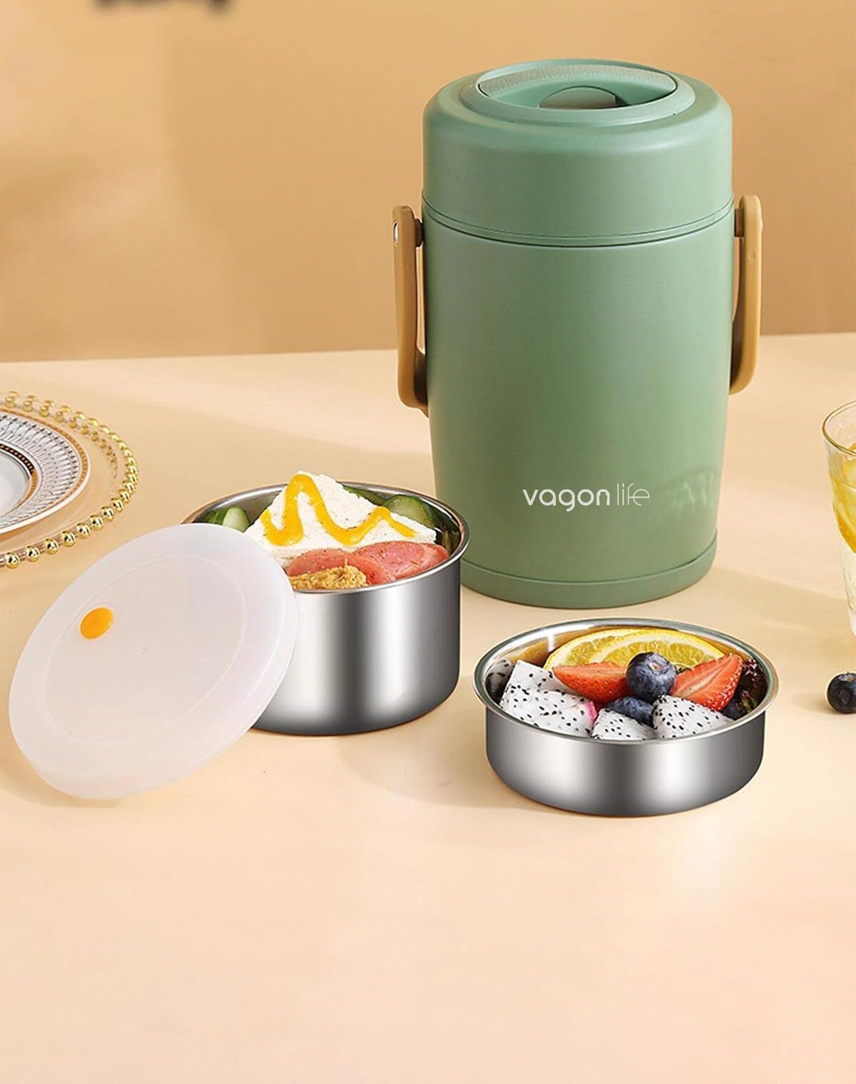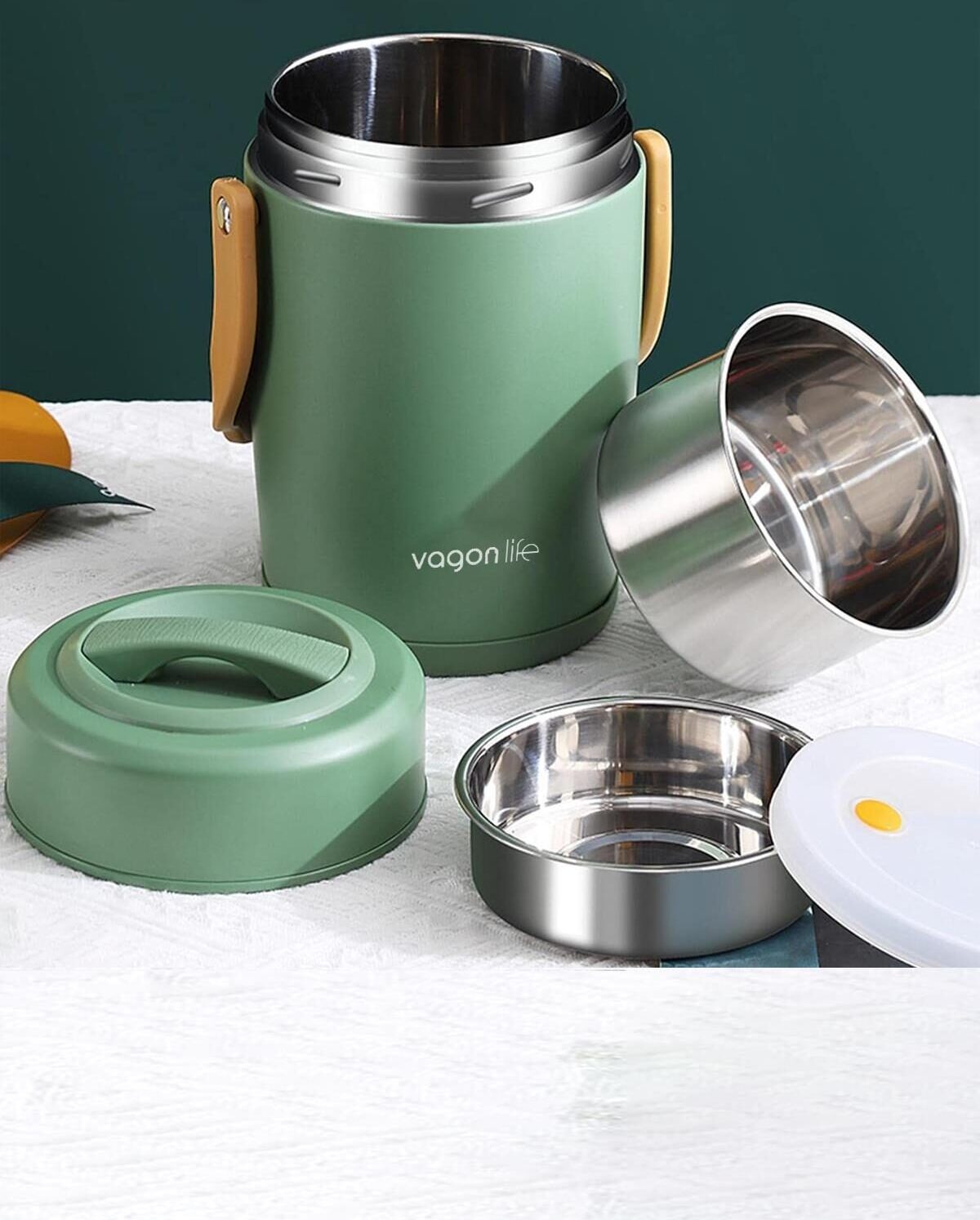 ÇELİK YEMEK TERMOSU ISI YALITIMLI 2 KASELİ 1.6LT SIZDIRMAZ VAKUMLU KAP TAŞIMA KULPLU