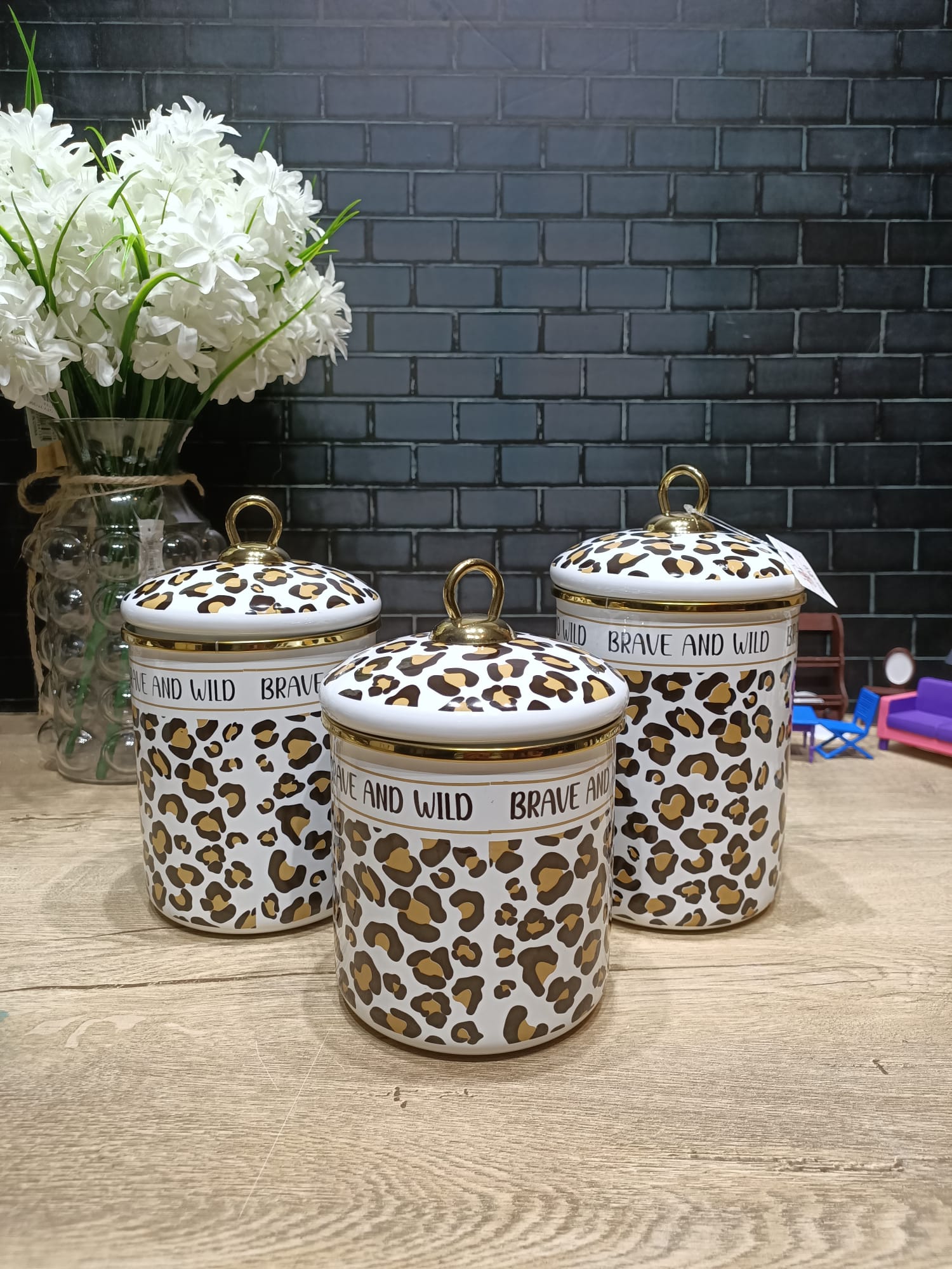 LEOPAR DESEN EMAYE 3LÜ BÜYÜK KAVANOZ SET