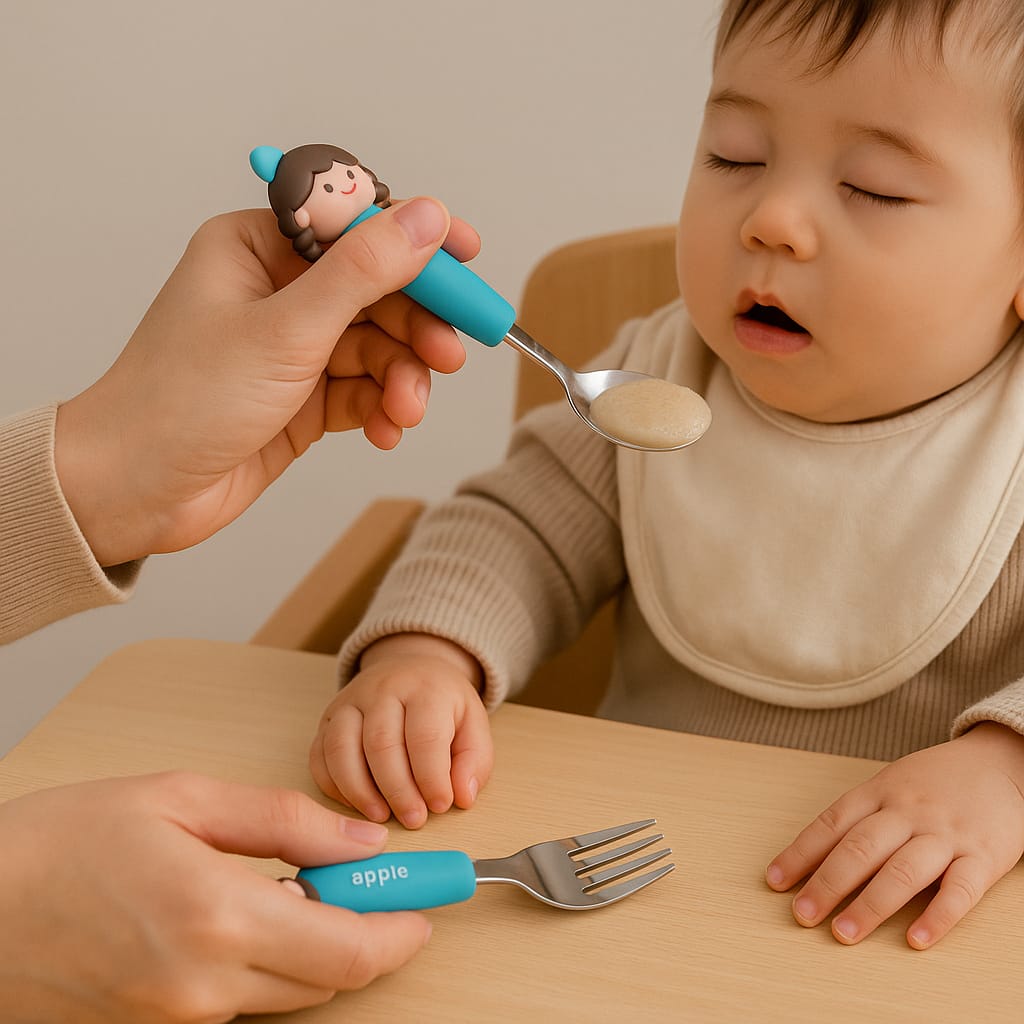 ÇOCUKLARA YEMEK YEMEYİ SEVDİRECEK PASLANMAZ ÇELİK KALİTELİ YAPISI İLE SİLİKON FİGÜRLÜ KAŞIK ÇATAL