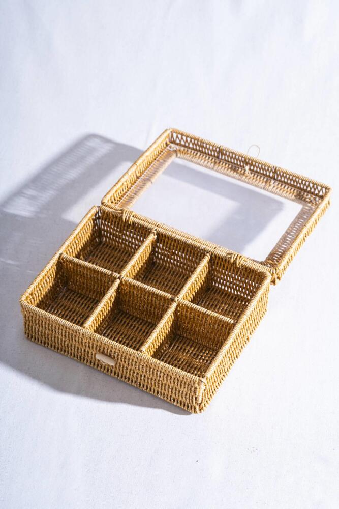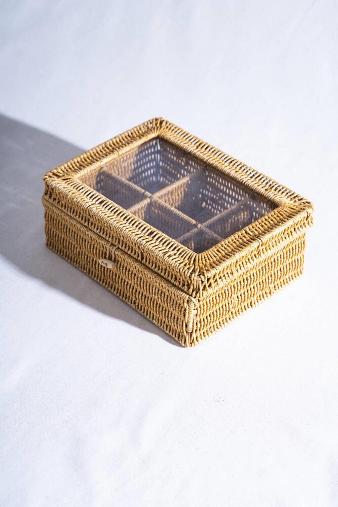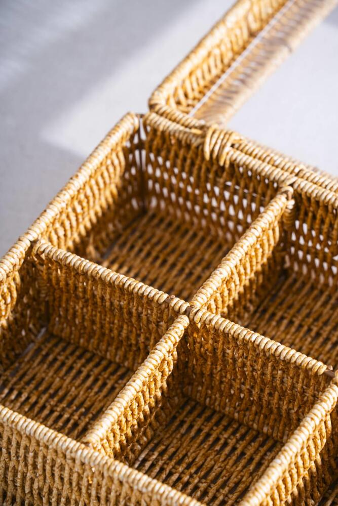 Çekmecelerden tezgâh üstlerine, hasır organizer evin her alanında düzeni sağlamak için tasarlandı. Doğal dokusu ve kompakt yapısıyla göz yormaz, bulunduğu alana sıcak bir hava katar.