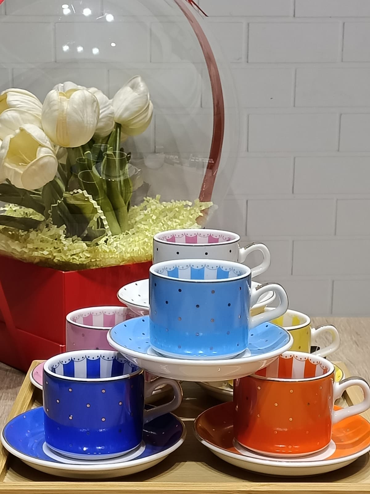 RENKLİ PUANTİYE PORSELEN FİNCAN TAKIMI