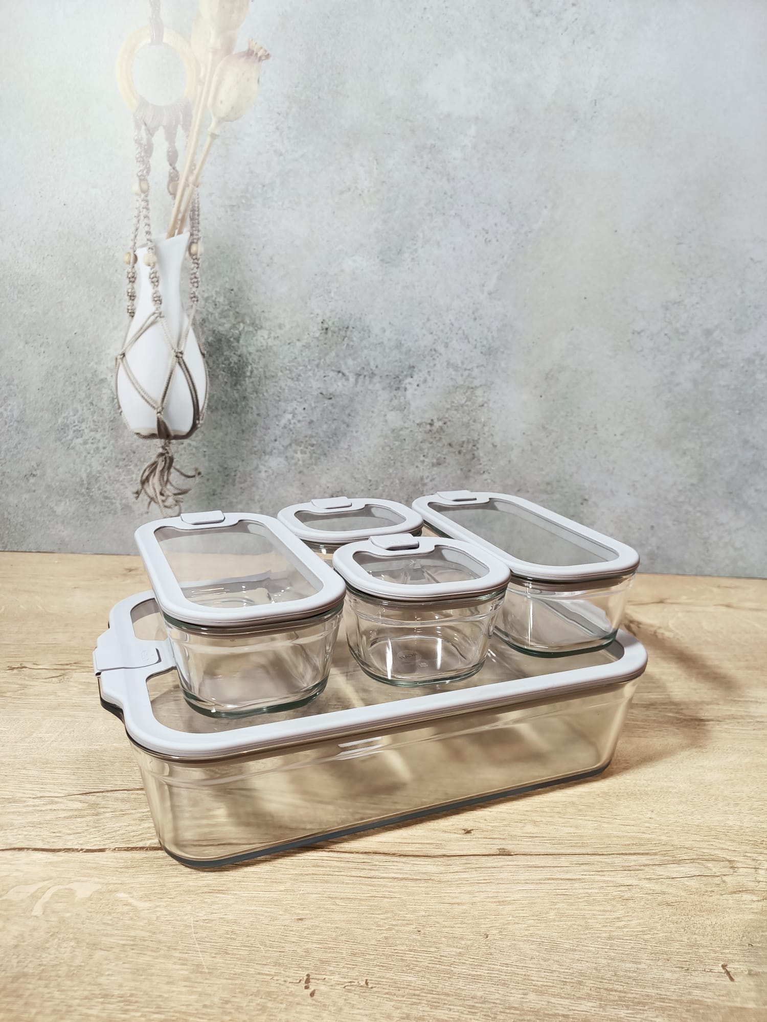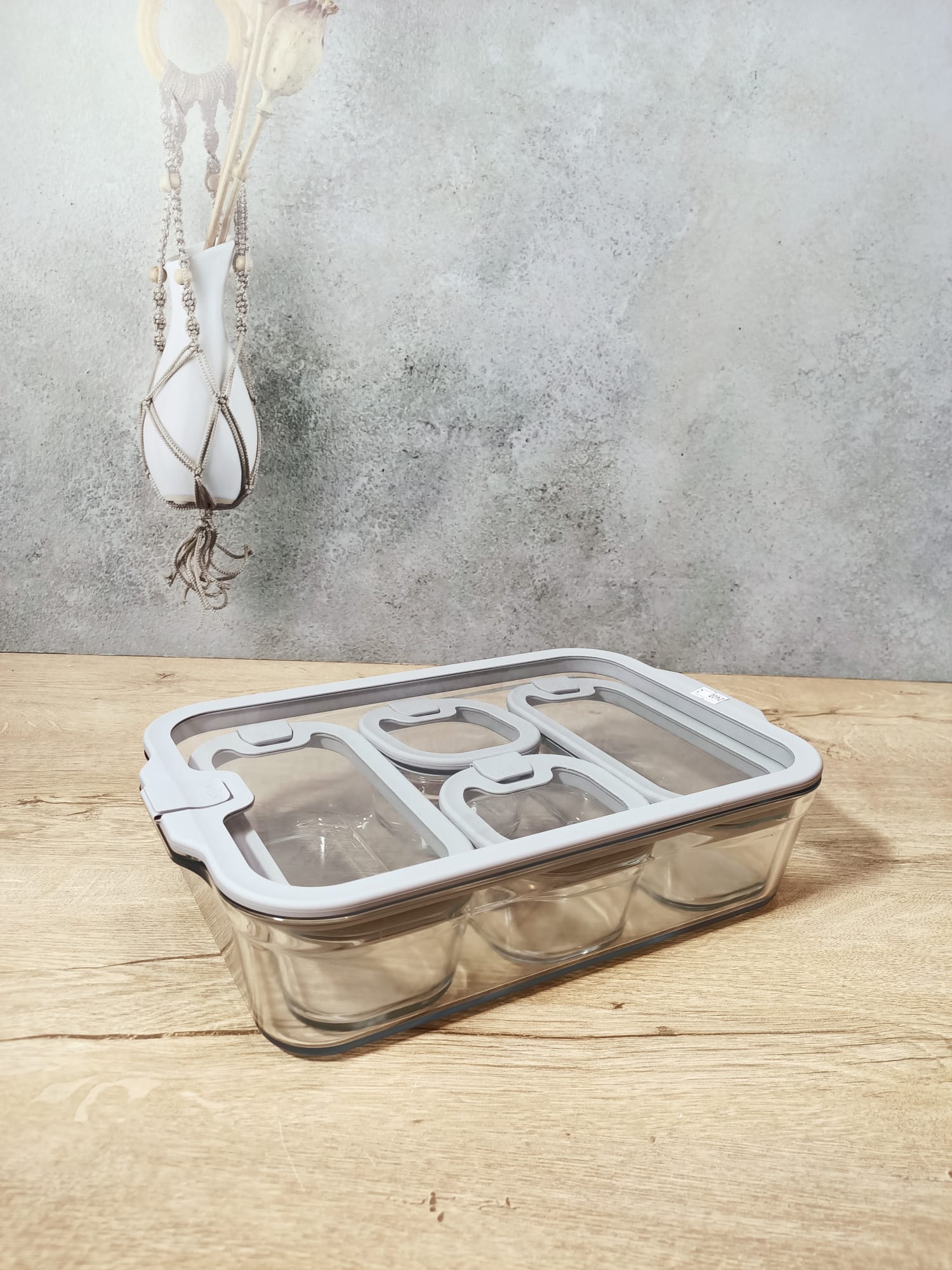 TEPSİLİ VAKUMLU KAPAK CAM KAHVALTILIK SAKLAMA SETİ